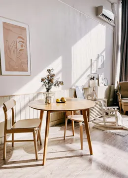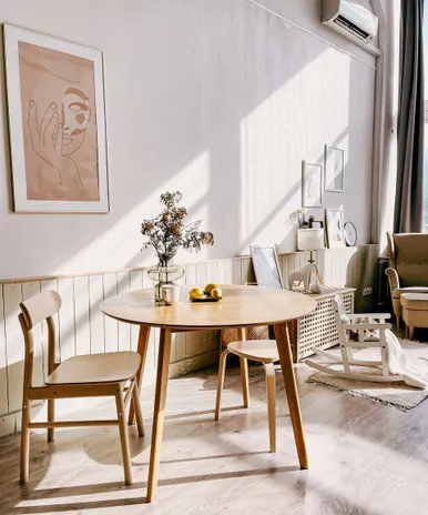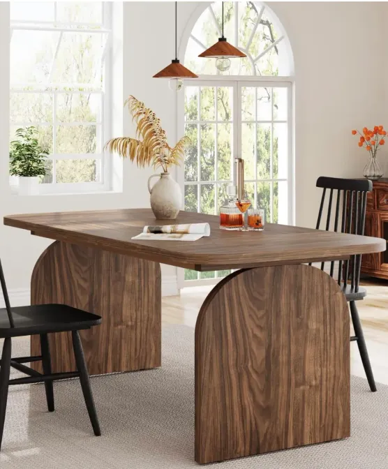 Made entirely from solid oak, this table has a base in our elegant style, featuring mid century modern-inspired angles.